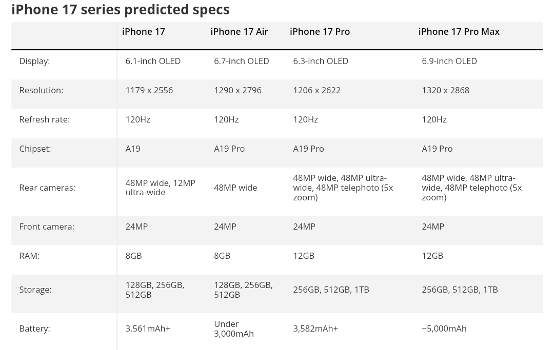 آیفون ۱۷ و مدلهای پرو، پرو مکس و ایر آن چه مشخصات سختافزاری خواهند داشت؟