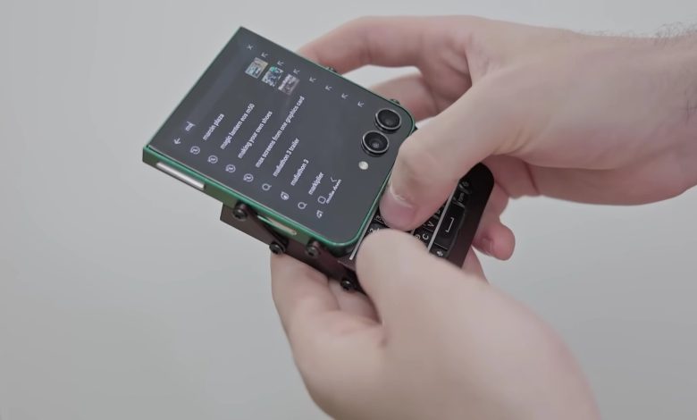 اگر صفحه نمایش تاشوی گوشی گلکسی زد فلیپ ۵ شما دچار آسیب شود، معمولاً گزینه اول تعمیر آن است، اما یک فرد مبتکر تصمیم گرفت راهی متفاوت و خلاقانه پیدا کند و یک کیبورد فیزیکی بلکبری Q10 را به آن متصل کند.