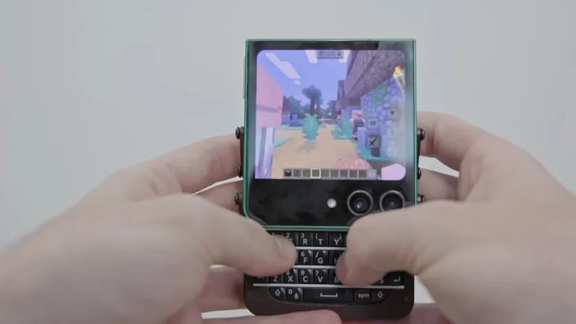 این مرد از یک گلکسی زد فلیپ ۵ شکسته و کیبورد بلکبری، یک گوشی کشویی ساخت