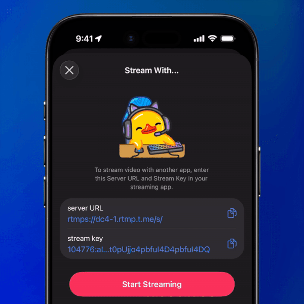 استریم در استوریها از کلیدهای RTMP برای اپهایی مانند OBS و XSplit پشتیبانی میکند تا محتواسازان بتوانند بهراحتی با ستاپهای فعلی خود در تلگرام پخش زنده داشته باشند.
