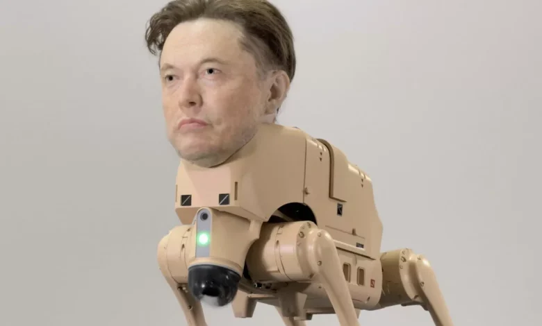 نمایش هنری عجیب: سگهای رباتیک با سر ایلان ماسک و مارک زاکربرگ! [تماشا کنید]