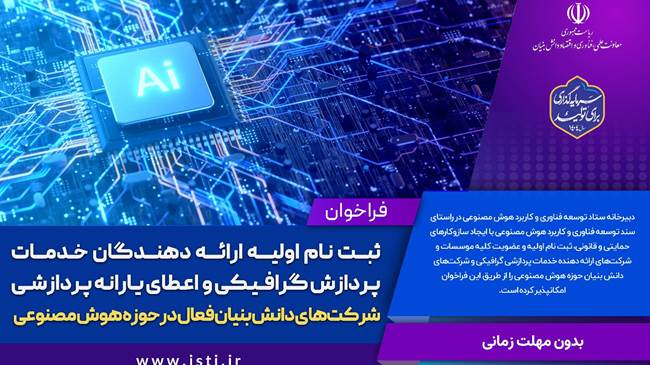 ستاد توسعه فناوری و کاربرد هوش مصنوعی معاونت علمی ریاست‌جمهوری، فراخوانی را برای ثبت‌نام اولیه ارائه‌دهندگان خدمات پردازش گرافیکی و همچنین شرکت‌های دانش‌بنیان فعال در حوزه هوش مصنوعی منتشر کرد.