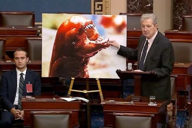 سناتور جان کندی، جمهوریخواه ایالت لوئیزیانا، چهارشنبه با یک پوستر بزرگ که تصویری از فیلم کلاسیک Alien محصول ۱۹۷۹ روی آن بود، در صحن مجلس سنا حاضر شد. او میخواست به مردم بفهماند که اگر مراقب نباشند، آمریکاییها شبیه موجود این فیلم خواهند شد.